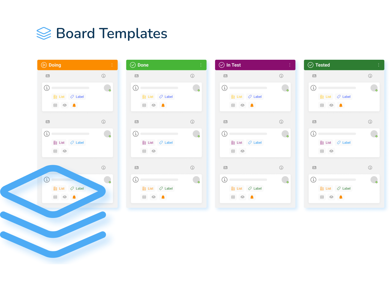 Allows users to create boards quickly and easily, and provides access to important predefined settings for KanBo.