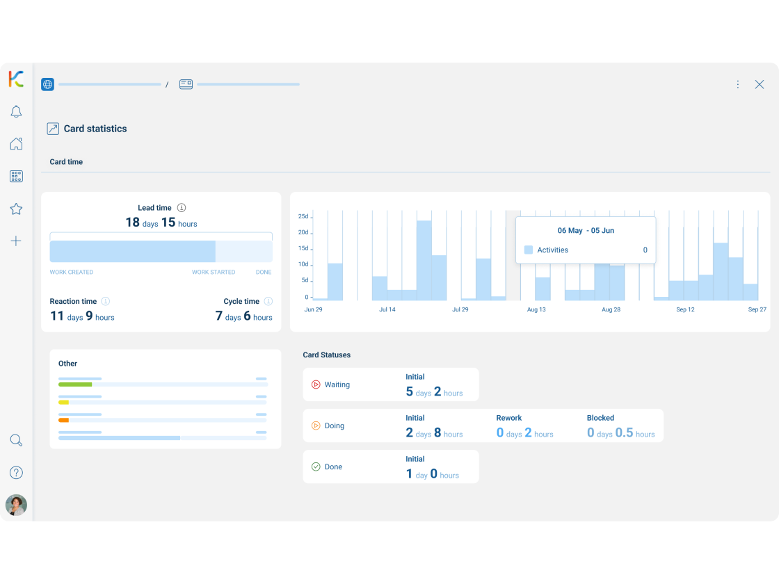 The card statistics feature offers a wealth of analytical insights to help users gain a comprehensive understanding of their card realization process. It provides a visual representation of a card’s lifecycle.